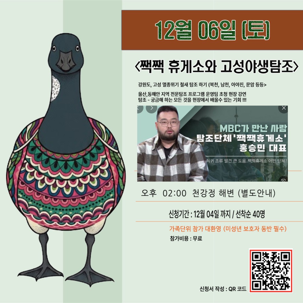 [고성군] 제4회 고성 새로보기 탐조 마을학교 프로그램별 신청 링크 또는 QR코드를 통해 참여 신청해 주세요!