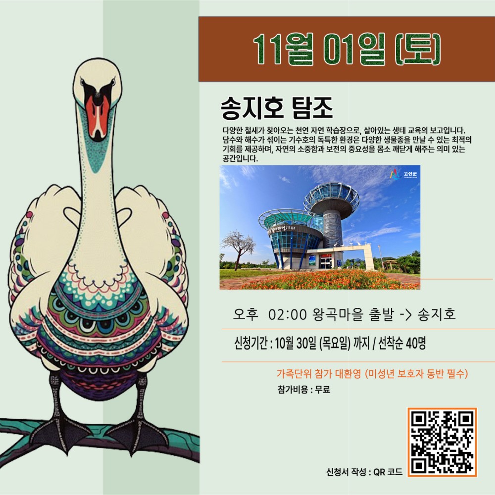 생명을 만나는 고성 철새 맞이 축제 "제4회 고성 새로보기 탐조 마을학교"를 운영합니다.