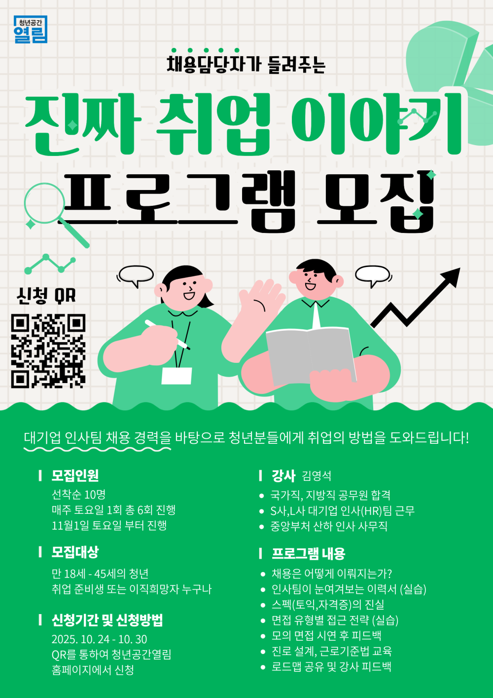 - 인사(HR)팀 실무경험을 바탕으로 지역 청년들에게 도움되는 취업정보 제공