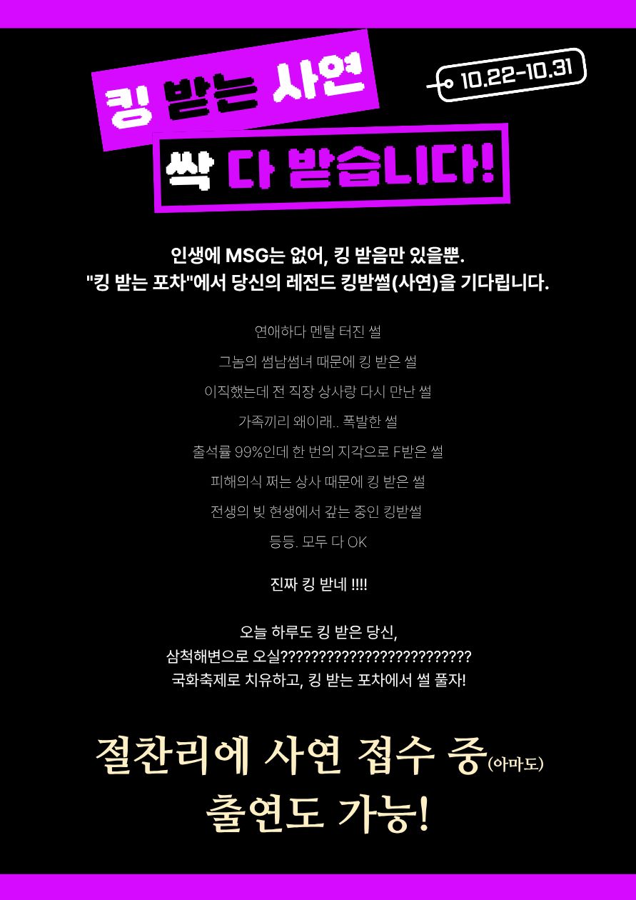 ○ 접수대상: 킹(화)받는 사연있는 누구나