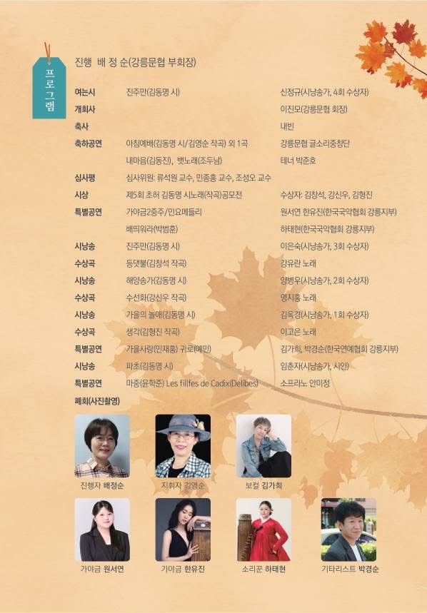 장소 : 김동명문학관(사천면 샛돌1길 30-2)출연자와 안내는 홍보물을 참고하여 주시고