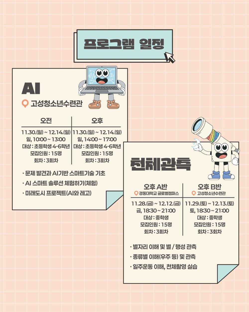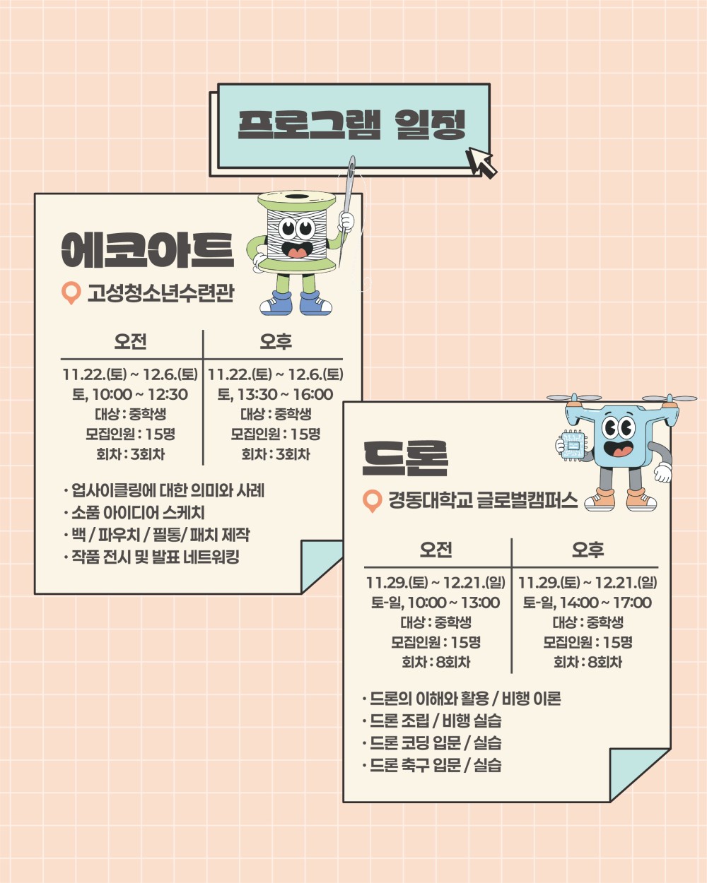 □ 모집인원 : 프로그램(반) 당 15명 * 선착순모집