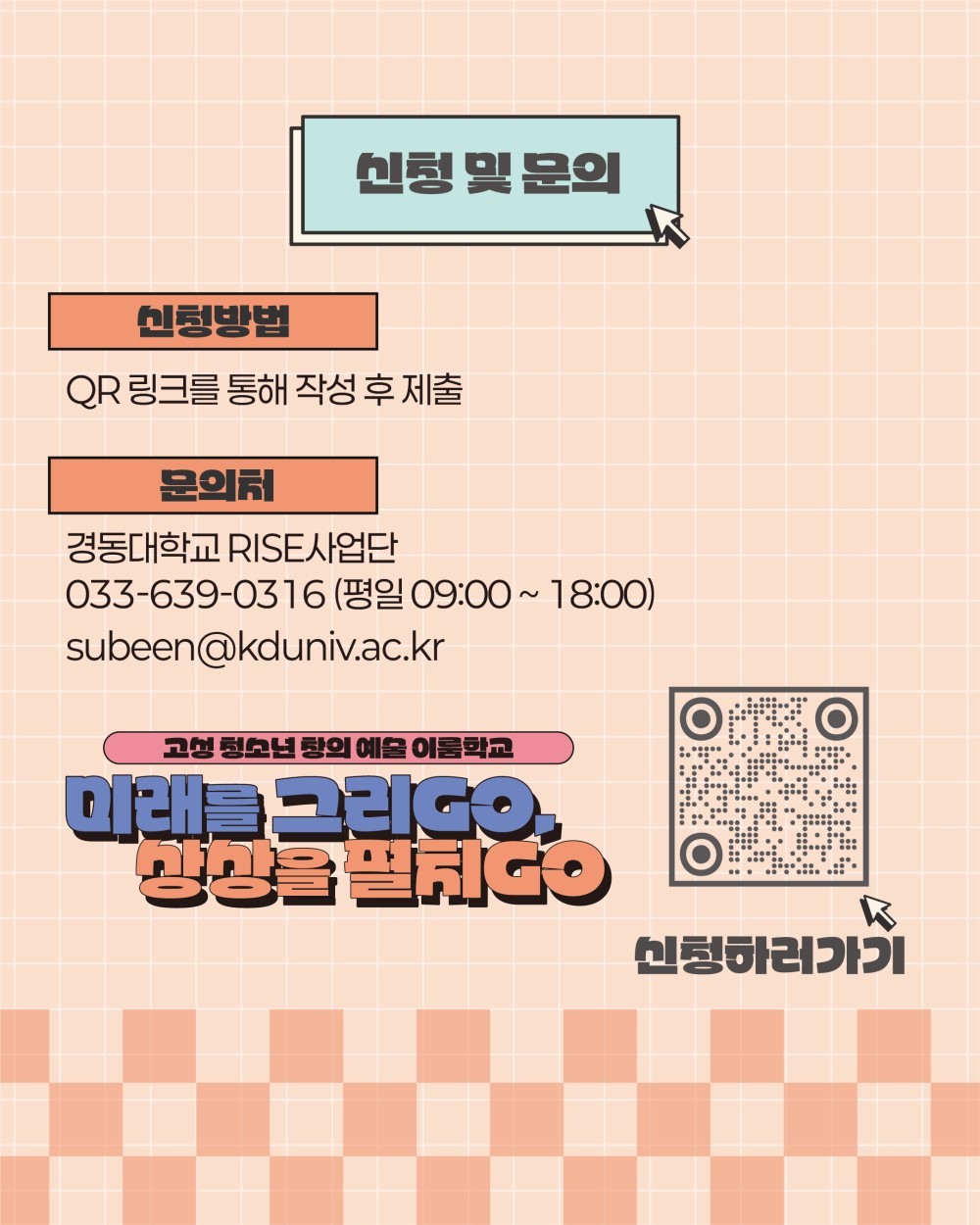 □ 문 의 처 : 경동대학교 RISE사업단 ☎ xxx-xxx-xxxx(평일 09:00~18:00)
