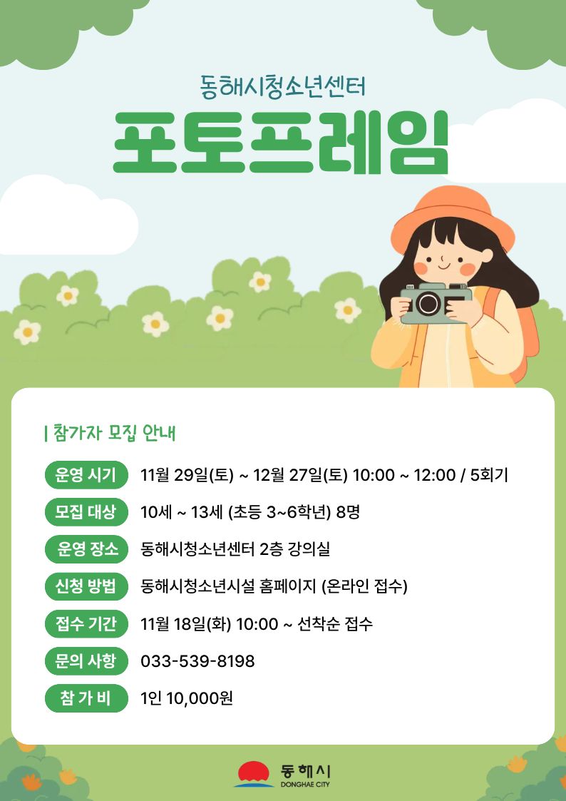 [동해시] 동해시청소년센터 참가자 모집 안내