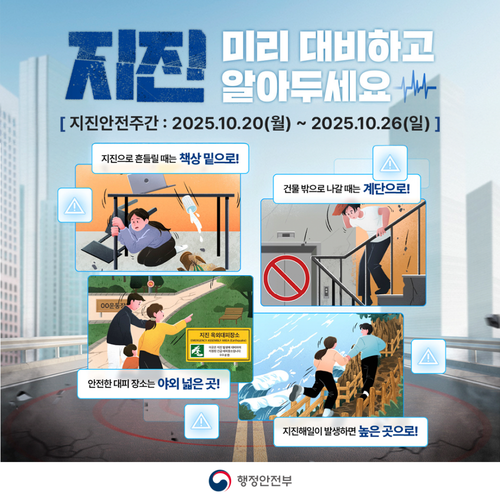 아울러 지진 및 지진해일 발생 시 대피요령도 공유하오니 숙지하여 안전을 도모하여 주시기 바랍니다.