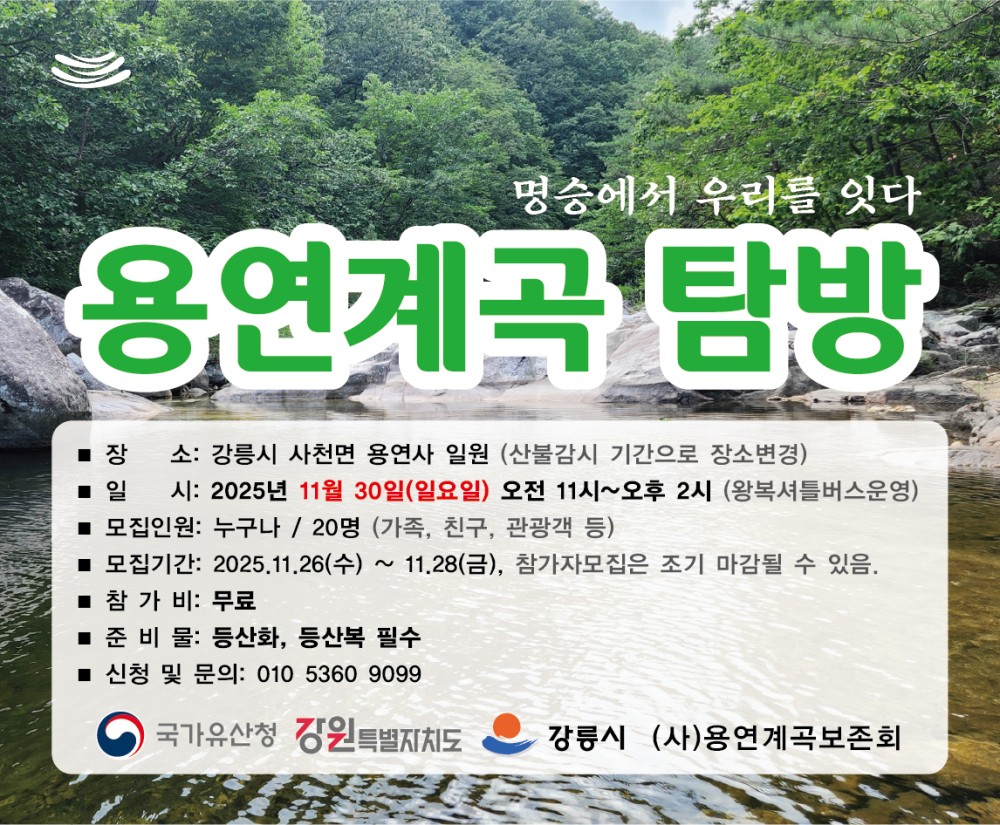 [강릉시] 「2025 생생국가유산」 용연계곡 탐방 모집(3차) 홍보