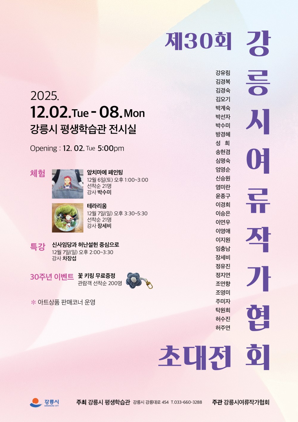 ○ 문의: 강릉시 평생학습관 ☎xxx-xxx-xxxx