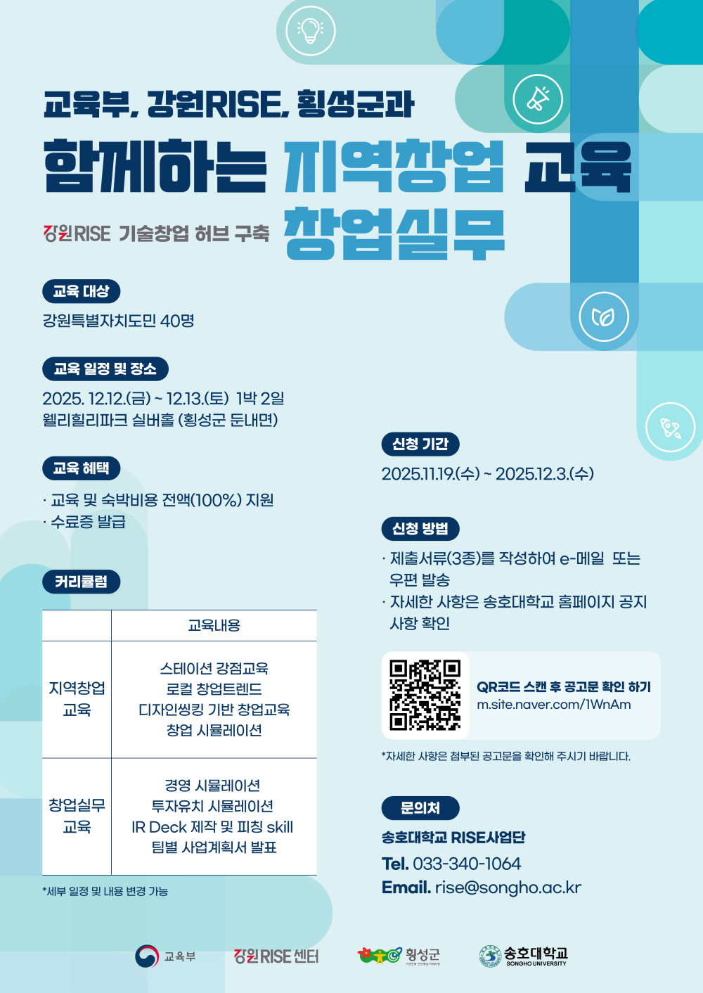 [횡성군] [대표] 교육부, 강원RISE, 횡성군과 함께하는 지역창업·창업실무 교육