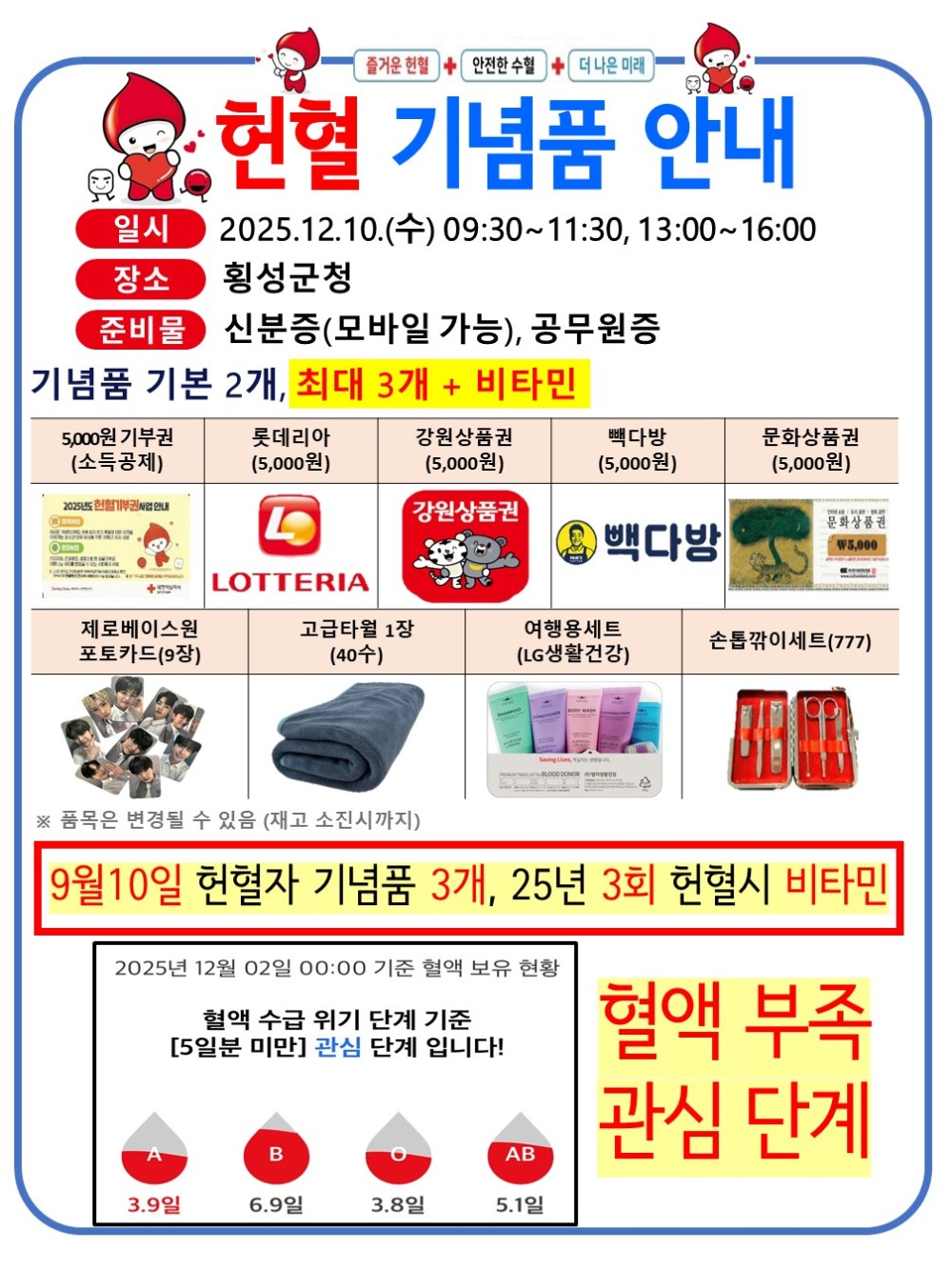 ① 헌혈 참여자 기념품 제공(1+1)