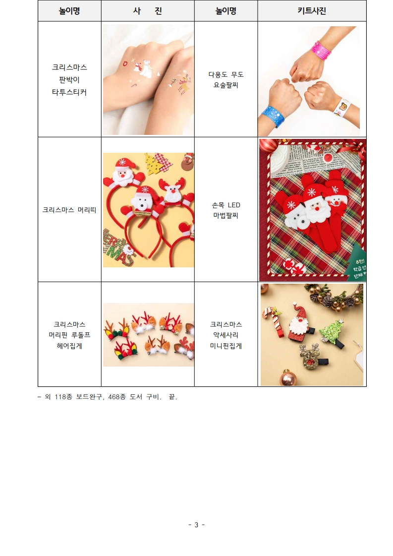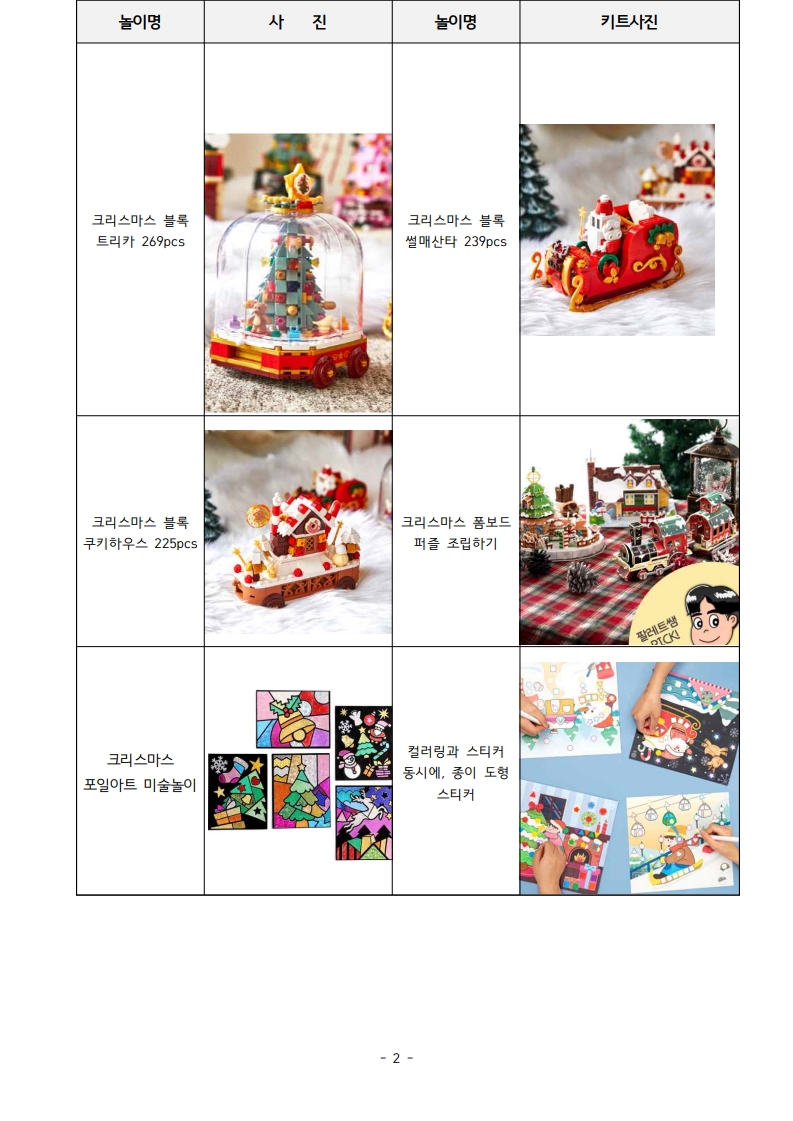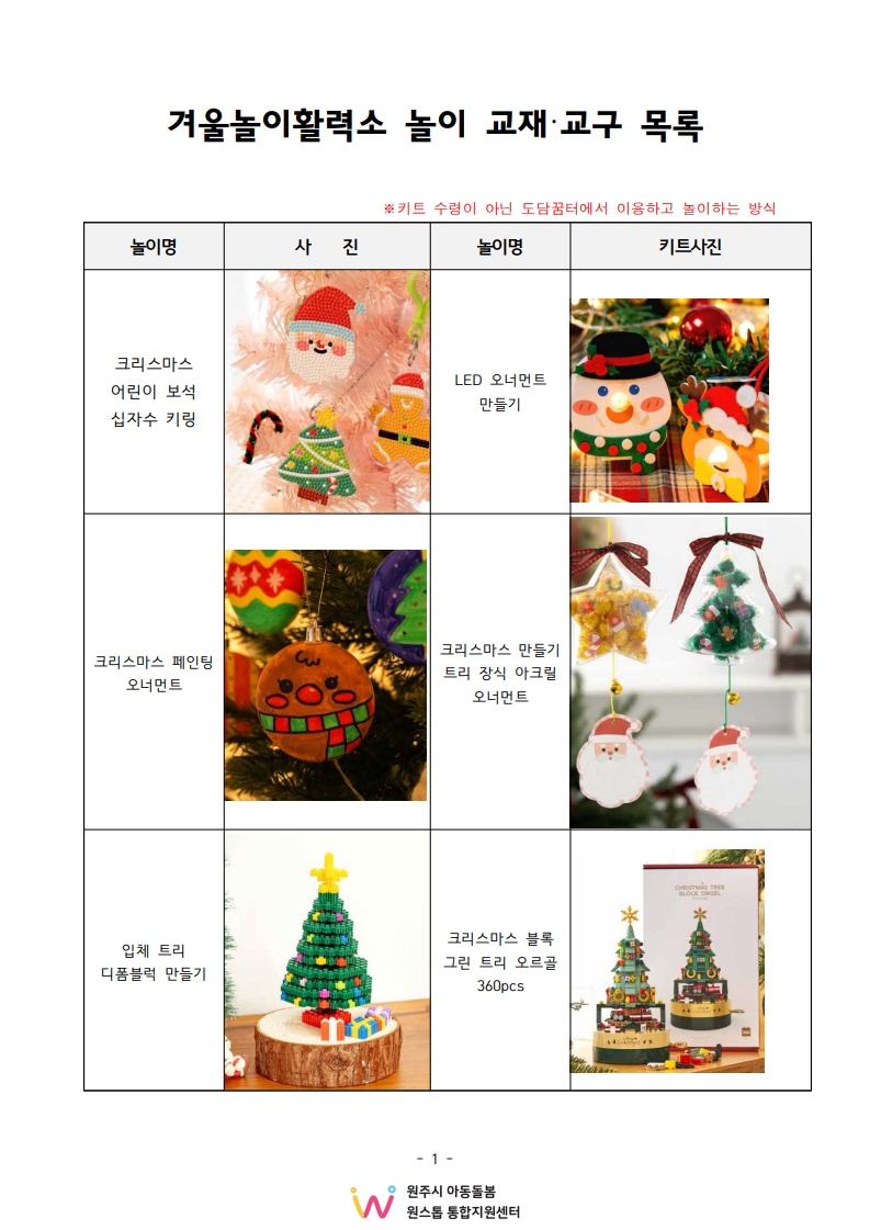 - 겨울놀이활력소 운영기간 동안 다양한 크리스마스 관련 놀이 이벤트 진행(키트 수령X)