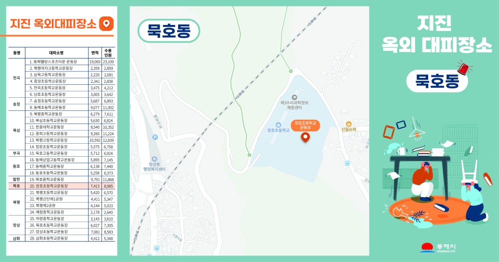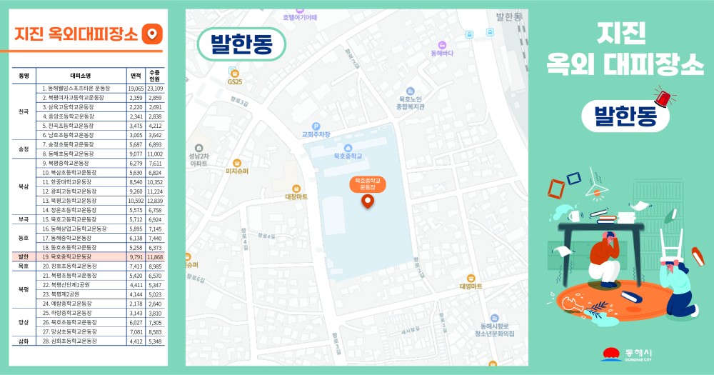 동별 지진 옥외대피장소(발한, 묵호, 북평, 망상, 삼화)