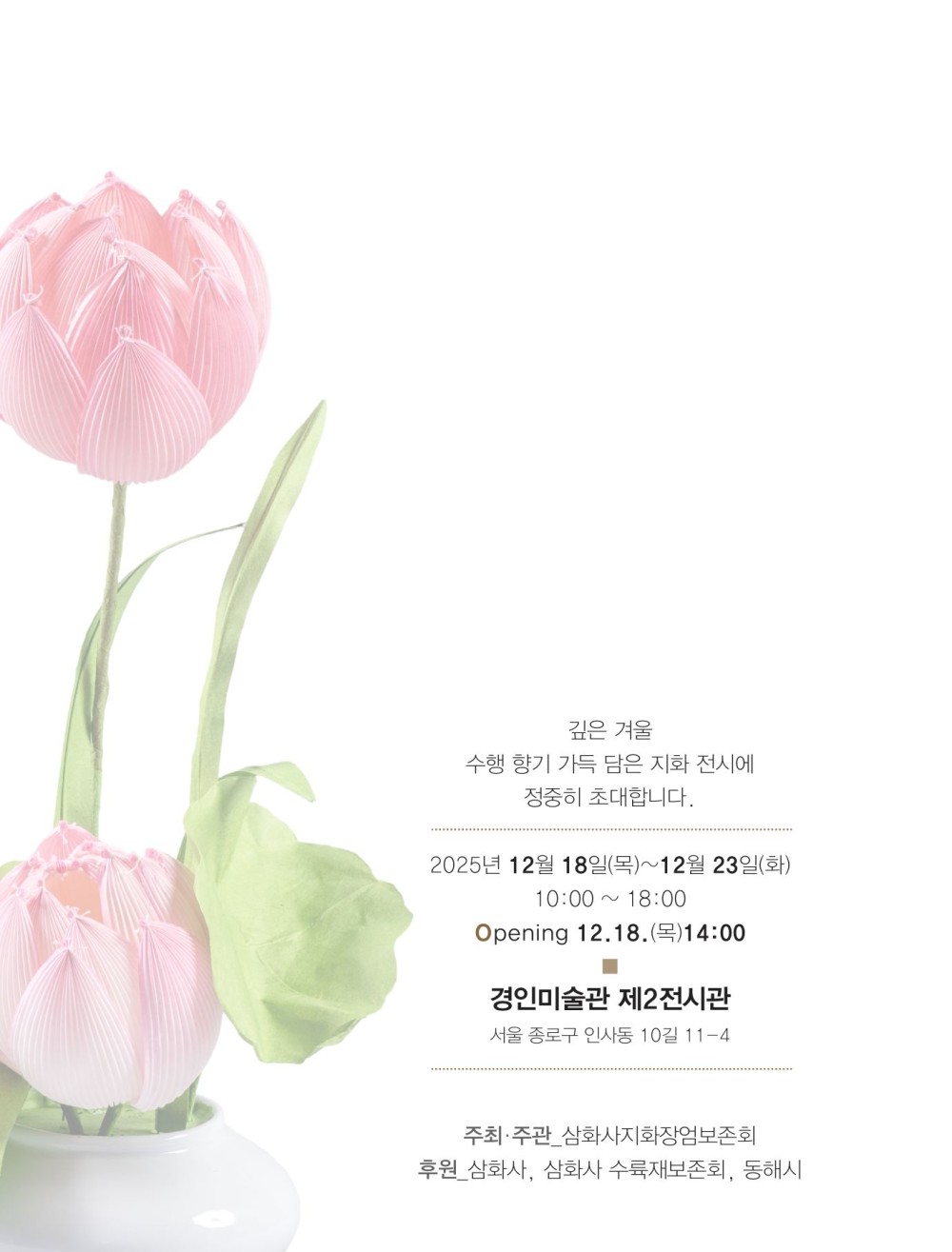 동해시의 자랑스러운 무형유산인 삼화사 지화장엄과 흑자장의 전통 미학을 선보이는 특별한 전시회가 연말을 맞이하여 개최됩니다.