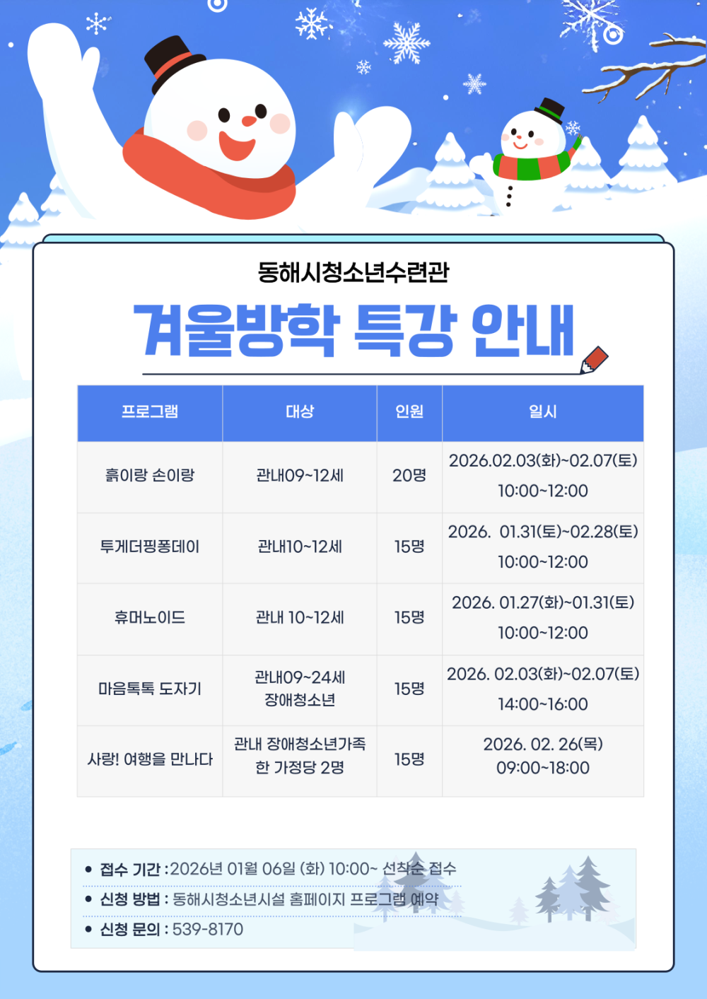 2026 동해시청소년수련관[ 겨울방학 특강] 안내