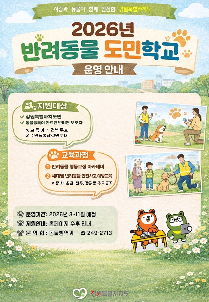 - 2026년 3월중 반려동물지원센터 공고 예정 (춘천, 원주, 강릉 등 예정)