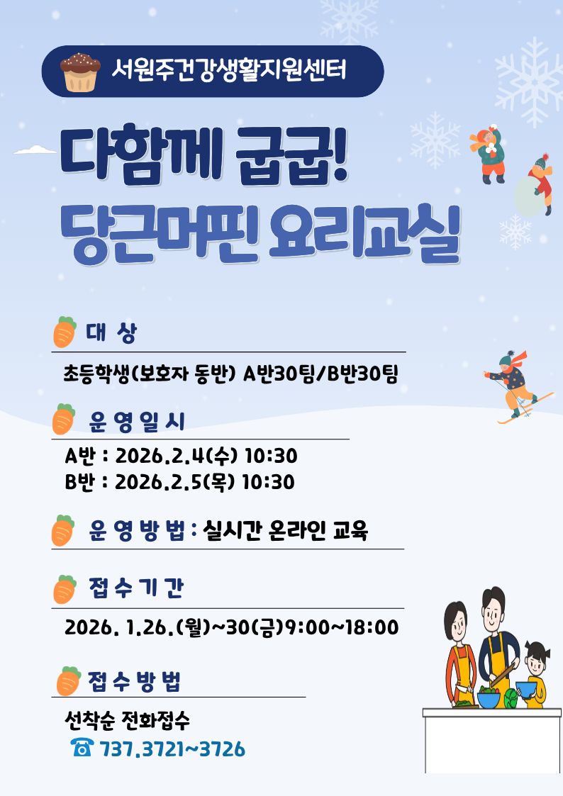 [원주시] 서원주건강생활지원센터 「다함께 굽굽! 당근머핀 요리교실」 참여자 모집