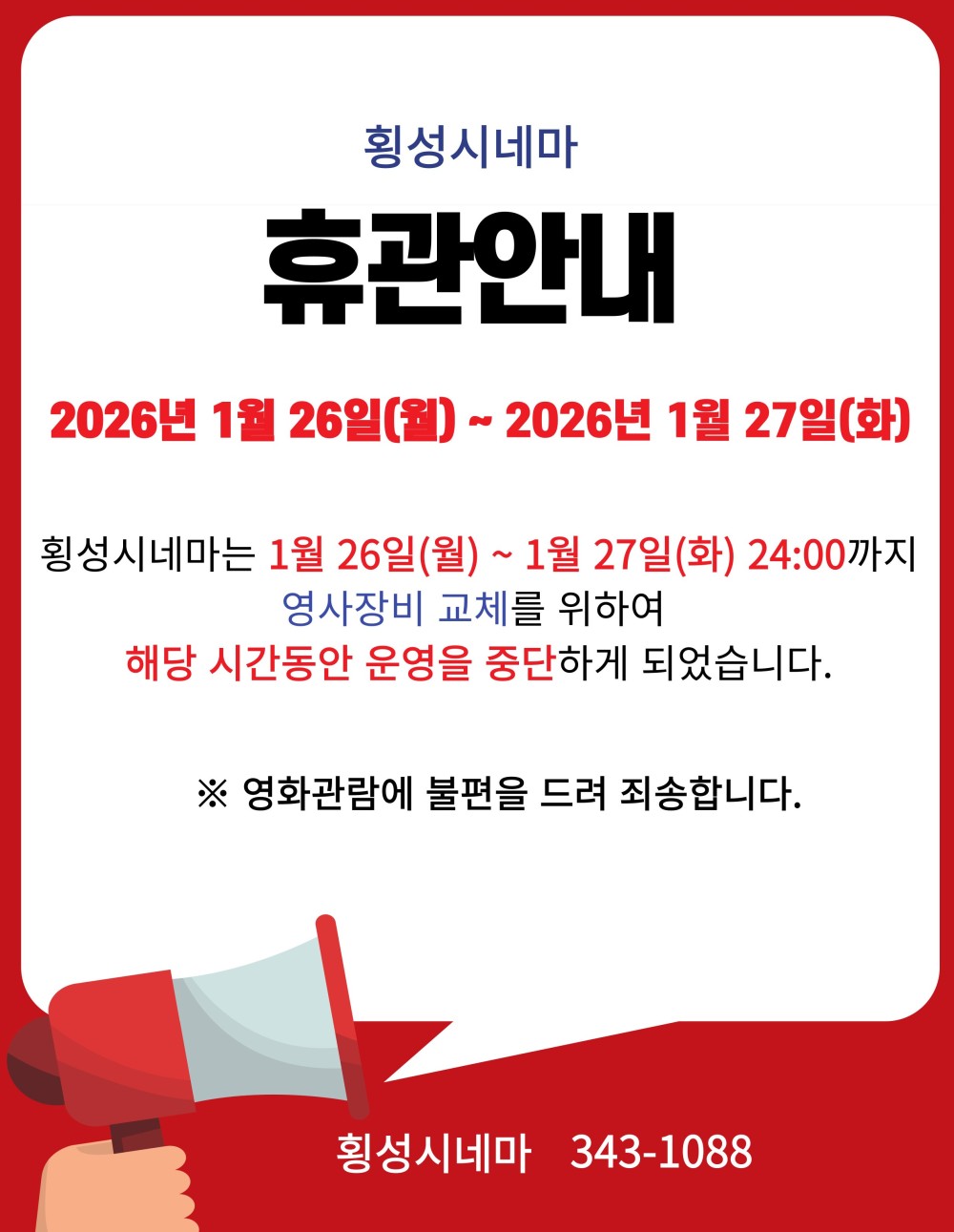 [횡성군] [대표] 횡성군 작은영화관'횡성시네마' 휴관안내