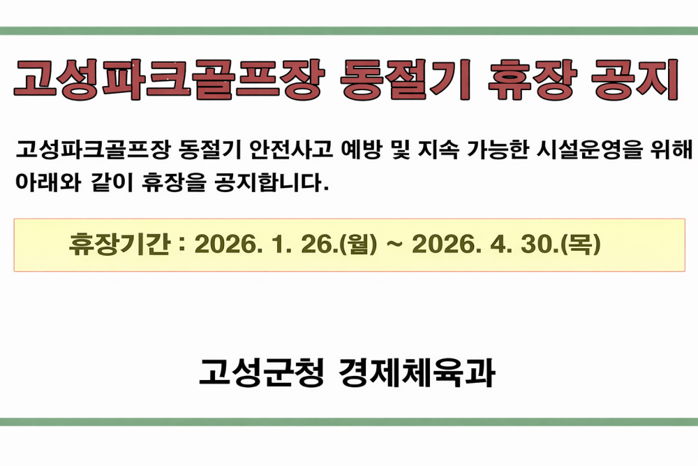 [고성군] 고성파크골프장 동절기 휴장 안내 새글