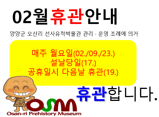 2026년 02월 오산리선사유적박물관 관람 가능한 날을 안내 합니다.