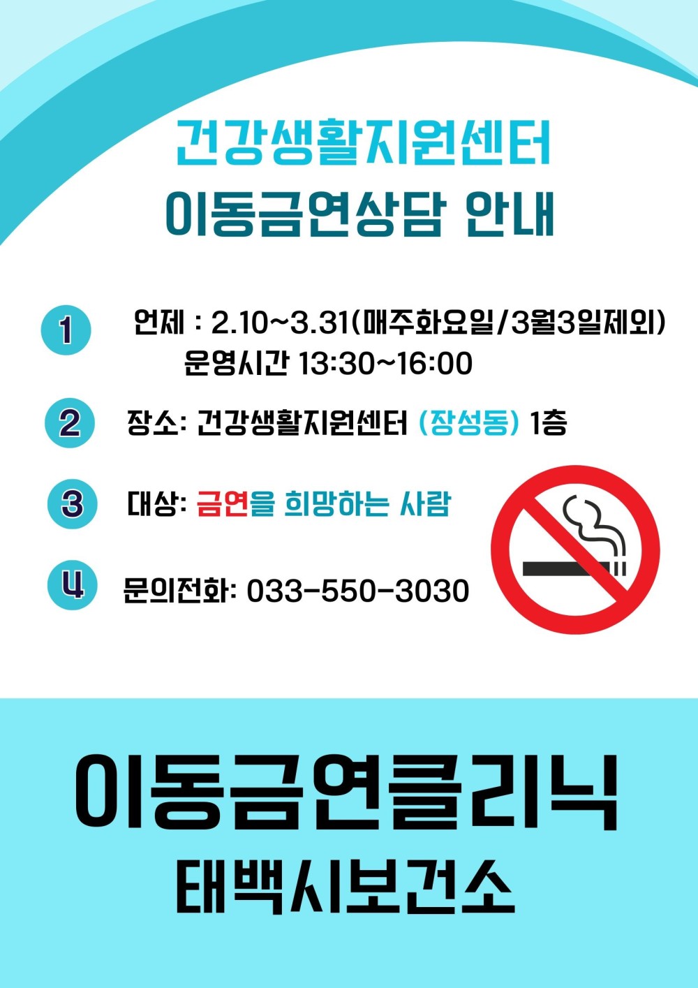 [태백시] 건강생활지원센터(장성동) 이동금연상담 안내