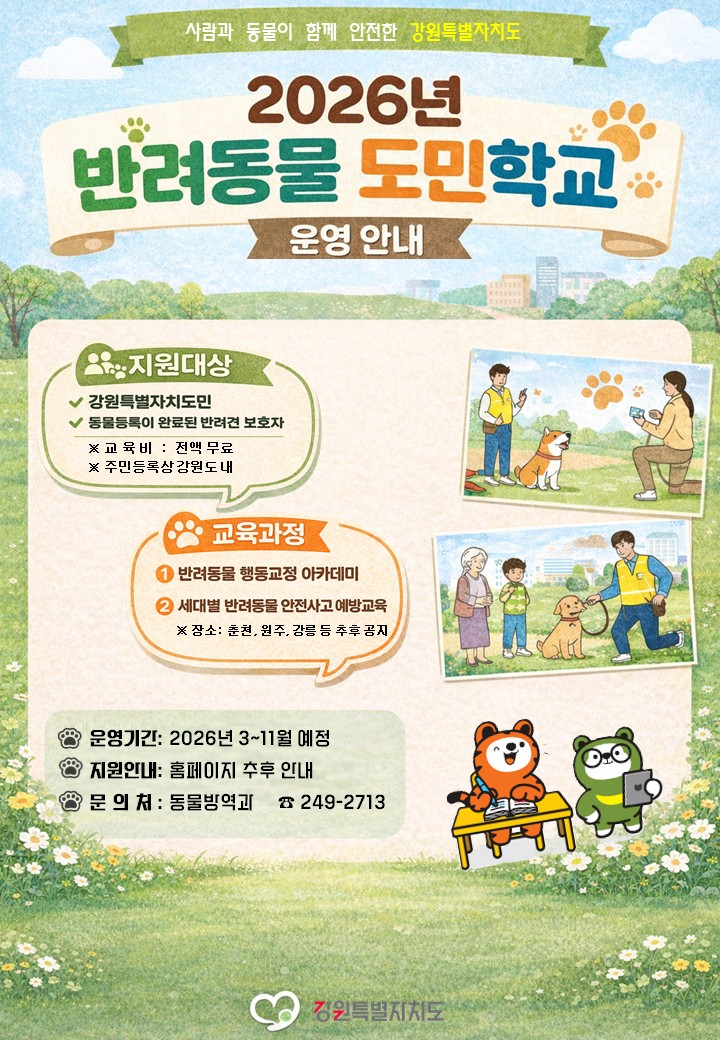 강원특별자치도에서 주관하는 2026년 반려동물 도민학교 운영을 위와 같이 추진할 예정이오니