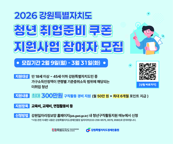 [횡성군] [대표] 2026년 강원특별자치도 청년 취업준비 쿠폰 지원사업 참여자 모집