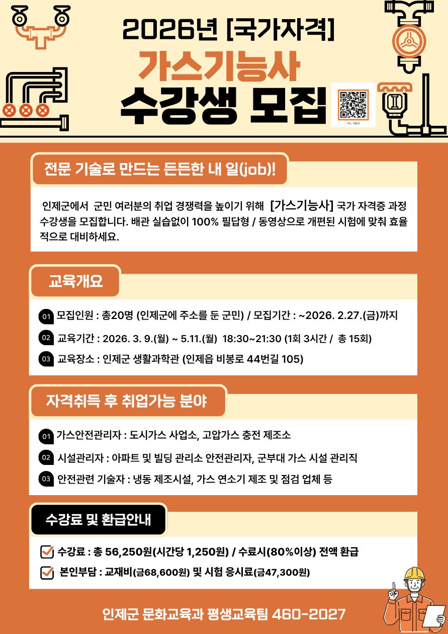 [인제군] [연중강좌] 국가자격 _ 가스 기능사 자격과정