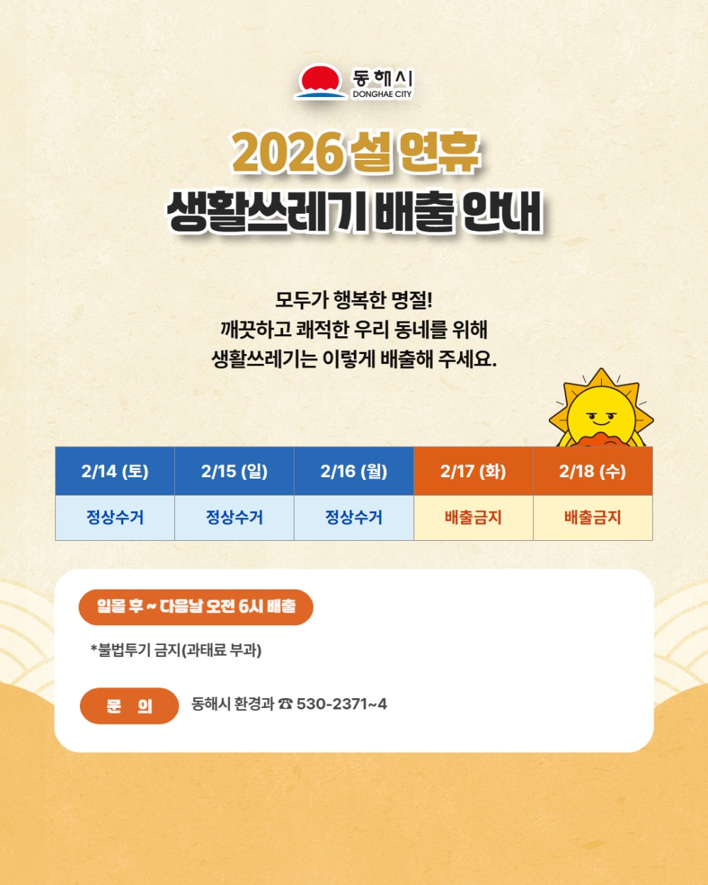 [동해시] 2026년 설 연휴 생활쓰레기 배출 안내 Home시군별소식62188 열공하자 열공하자님의 홈 전체게시물 아이디로 검색 열공하자님의 홈 전체게시물 아이디로 검색 2026.02.13 16:20 588 0 0 LV.1 11% 관련링크 : https://www.dh.go.kr/www/selectBbsNttView.do;JSESSIONID=2B226349332897FFEFC1EADFDC6F0617?key=474&bbsNo=172&nttNo=199385&searchCtgry=&searchCnd=all&searchKrwd=&integrDeptCode=&a… 75회 연결 신고 목록 게시글 신고 안내 아래 내용중 해당하는 내용이 있을경우 아래 게시글신고 버튼을 클릭하시고 사유를 작성해주시면 빠른시간 안에 삭제및 필요조치하여 드리겠습니다. 로그인후 이용이 가능합니다. 그리고 답변은 메뉴 아이러브강원 > 1:1문의에서 확인이 가능합니다. 자신 또는 제3자를 비방하거나 중상 모략으로 명예를 손상시키는 내용 범죄행위와 관련이 있다고 판단되는 내용 다른 회원 또는 제3자의 저작권 등 기타 권리를 침해하는 내용 타인의 개인정보, 사생활을 침해하거나 명예를 손상시키는 경우 자신의 글을 타인이 도용한 경우 위의 내용 이외에 기타사항 본문 이미지 확대보기 2026년 설 연휴 생활쓰레기 배출 안내입니다. [출처 : 동해시청 -시정소식-] 0 로그인 후 추천을 하실 수 있습니다. 열공하자 님의 최신글 열공하자 님의 최신댓글 채용정보 - 2026년 창의놀이터 기간제근로자 모집 공고 5시간 31분전 시군별소식 - 치매공공후견인 후보자 모집 공고 5시간 31분전 채용정보 - 「2026년 연안안전지킴이」참여자 모집 공고 5시간 31분전 채용정보 - 주간보호 요양보호사 모집 13시간 31분전 시군별소식 - 동해시청소년센터 참여자 모집 2026-03-07 시군별소식 - 동해시 교육발전특구사업 [삼권분립 바로알기 수학여행] 참여 청소년 모집 공고 (상반기) 2026-03-07 채용정보 - [모집종료] 주간보호 요양보호사 모집 2026-03-07 채용정보 - 위생원 공개채용 공고 2026-03-07 Q&A - 청령포 인근은 영월 시내와 차로 5~10분 거리라 선택지가 아주 넓습니다! 영화 '왕과 사는 남자'의 여운을 느끼며 즐기기 좋은 현지인 맛집 3곳을 콕 집어 추천해 드릴게요.1. 청령포 바로 앞: 강원토속식당청령포 주차장에서 도보로 갈 수 있을 만큼 가깝습니다. 영월의 향토 음식인 칙국수와 감자송편이 별미예요.특징: 걸쭉하고 고소한 국물 맛이 일품이라 어르신들이나 아이들과 함께 가기 좋습니다.추천 메뉴: 칙비빔국수, 감자전 2. 영월의 자부심: 영월서부시장 (미탄집 등)청령포에서 차로 5분 거리입니다. 영월 여행에서 빼… 2026-03-04 유머 - 2026-02-20 유머 - 반대아님?? 고딩 생물 배울때쌍거풀은 열성이라고 배웠음 2026-02-14 Q&A - 질문자님을 뵙게 되어 감사드리며컴퓨터 하드웨어 & 조립분야 & 데스크탑 & VGA 분야 TOTAL 1위로 활동중이며2017년ㆍ2019년 분야별 지식인 1위로 선정된 IT 노하우 분야 1위 expert 지식IN 입니다.----------------------------------------------------------상황이 어렵다고 꿈조차 가난할 수는 없는거니까요.스스로 자신을 잃지 않고 자신의 꿈 풍요로운 자신을 위해지금부터 노력해 나아가면되죠.현실에 좌절하지 말고 자신을 위해 준비해나가길 바래요.너무 힘… 2026-02-08 Q&A - 만약에 이홍을 하면 양육권이 주워집니다 둘다 양육권을 포기하면 고아가 돼고 그리고 왜 싸우는지 한번 물어보세요 그리고 돈이 어느정도 있다면 거지가 됄일은 없습니당 그리고 아빠가 도박을 하는것일수도 있습니더 폰을 몰래 봐보시는것을 추천 드려요 2026-02-08 열공하자 님의 최신글 열공하자 님의 최신댓글 채용정보 - 2026년 창의놀이터 기간제근로자 모집 공고 5시간 31분전 시군별소식 - 치매공공후견인 후보자 모집 공고 5시간 31분전 채용정보 - 「2026년 연안안전지킴이」참여자 모집 공고 5시간 31분전 채용정보 - 주간보호 요양보호사 모집 13시간 31분전 시군별소식 - 동해시청소년센터 참여자 모집 2026-03-07 시군별소식 - 동해시 교육발전특구사업 [삼권분립 바로알기 수학여행] 참여 청소년 모집 공고 (상반기) 2026-03-07 채용정보 - [모집종료] 주간보호 요양보호사 모집 2026-03-07 채용정보 - 위생원 공개채용 공고 2026-03-07 Q&A - 청령포 인근은 영월 시내와 차로 5~10분 거리라 선택지가 아주 넓습니다! 영화 '왕과 사는 남자'의 여운을 느끼며 즐기기 좋은 현지인 맛집 3곳을 콕 집어 추천해 드릴게요.1. 청령포 바로 앞: 강원토속식당청령포 주차장에서 도보로 갈 수 있을 만큼 가깝습니다. 영월의 향토 음식인 칙국수와 감자송편이 별미예요.특징: 걸쭉하고 고소한 국물 맛이 일품이라 어르신들이나 아이들과 함께 가기 좋습니다.추천 메뉴: 칙비빔국수, 감자전 2. 영월의 자부심: 영월서부시장 (미탄집 등)청령포에서 차로 5분 거리입니다. 영월 여행에서 빼… 2026-03-04 유머 - 2026-02-20 유머 - 반대아님?? 고딩 생물 배울때쌍거풀은 열성이라고 배웠음 2026-02-14 Q&A - 질문자님을 뵙게 되어 감사드리며컴퓨터 하드웨어 & 조립분야 & 데스크탑 & VGA 분야 TOTAL 1위로 활동중이며2017년ㆍ2019년 분야별 지식인 1위로 선정된 IT 노하우 분야 1위 expert 지식IN 입니다.----------------------------------------------------------상황이 어렵다고 꿈조차 가난할 수는 없는거니까요.스스로 자신을 잃지 않고 자신의 꿈 풍요로운 자신을 위해지금부터 노