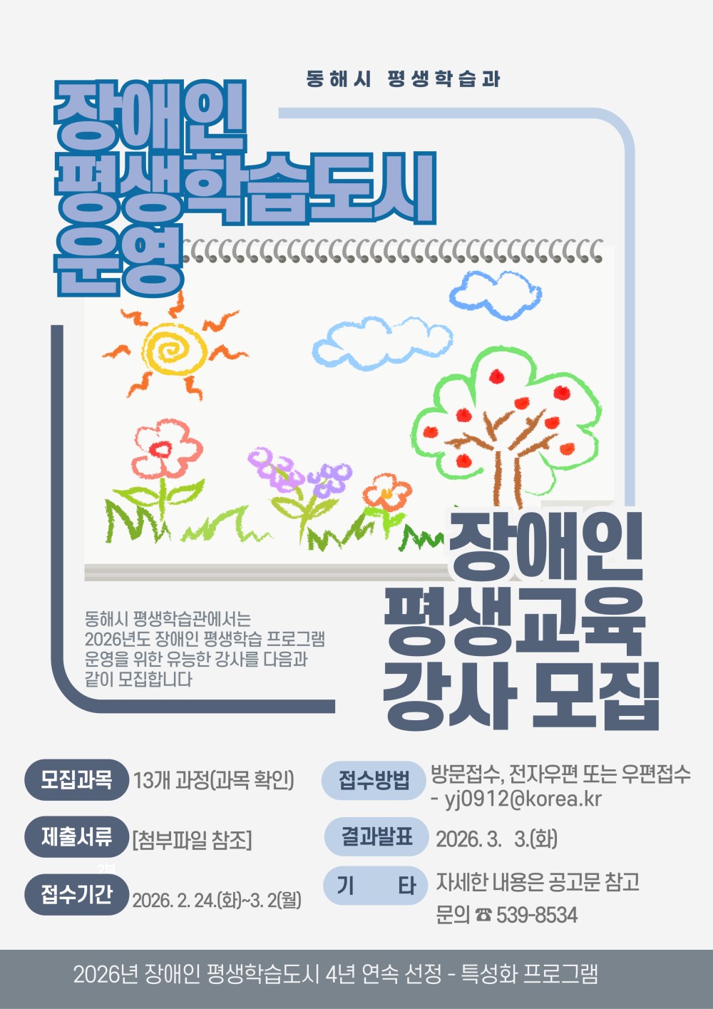 [동해시] 장애인 평생교육 지도강사 공개모집