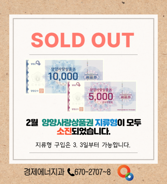 [양양군] 2월 양양사랑상품권 지류형 조기 소진 안내