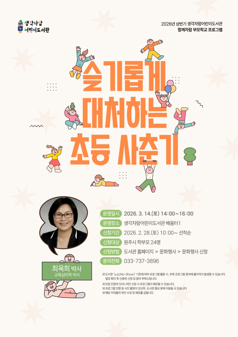 [원주시] 생각자람어린이도서관 2026년 「3월 함께자람 부모학교 프로그램」 운영 안내