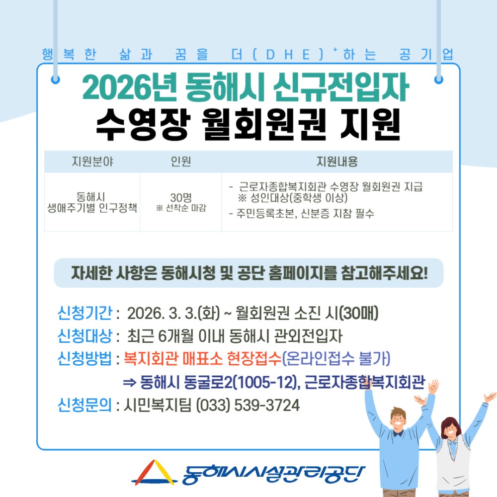 [동해시] 2026년 동해시 신규전입자 수영장 월회원권 지원 안내