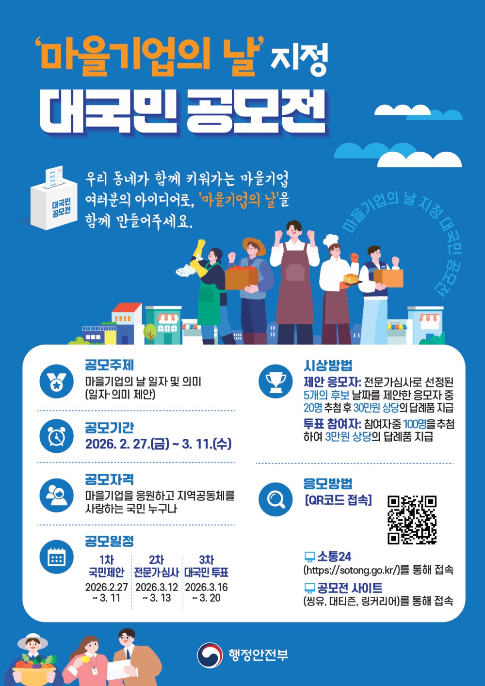 시군별소식 - [지역경제과] '마을기업의 날' 지정 대국민 공모전 알림2026-02-27