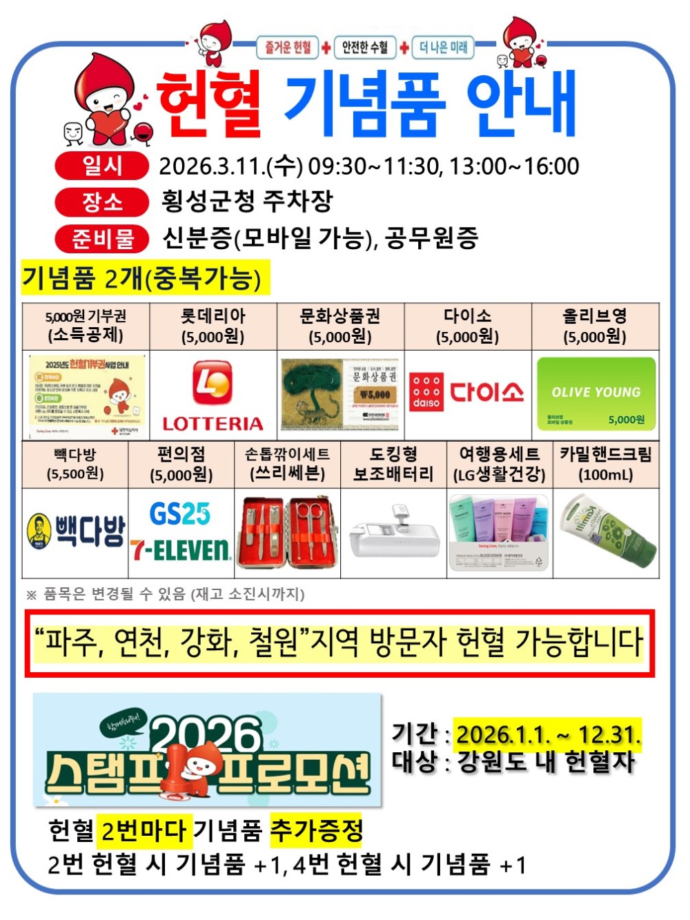 [횡성군] [대표]  2026년 1분기 횡성군청 생명나눔 사랑의 단체헌혈 캠페인 안내