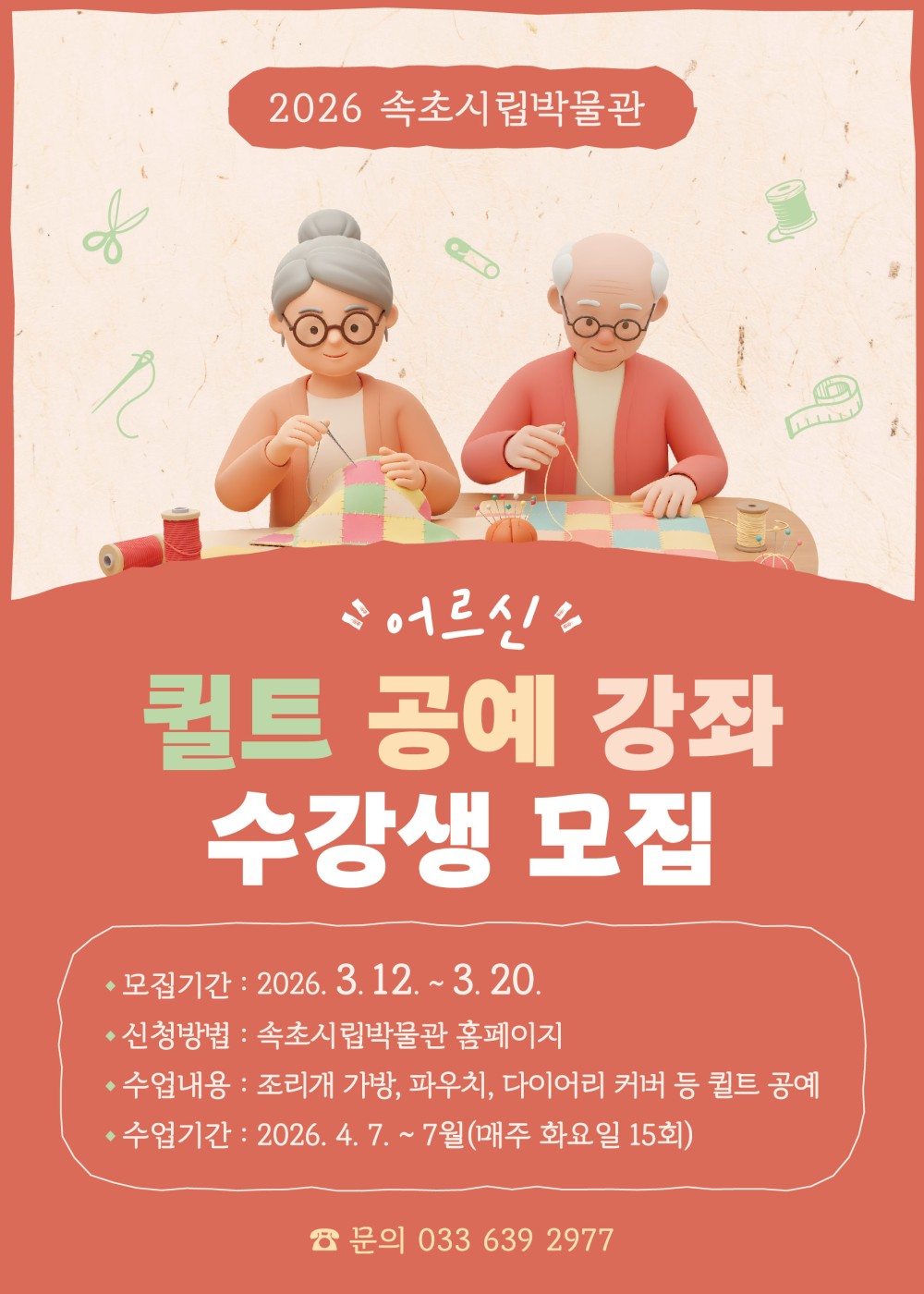 [속초시] [속초시립박물관] 속초시립박물관 어르신 퀼트 공예 강좌 수강생 모집