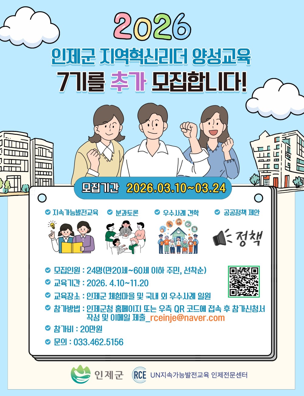 [인제군] 2026년 인제군 지역혁신리더 양성교육(7기 기본과정) 교육생 추가 모집 안내