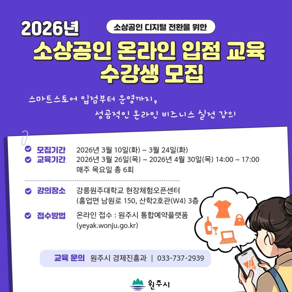 [원주시] 2026 소상공인 온라인 입점 교육 수강생 모집 안내