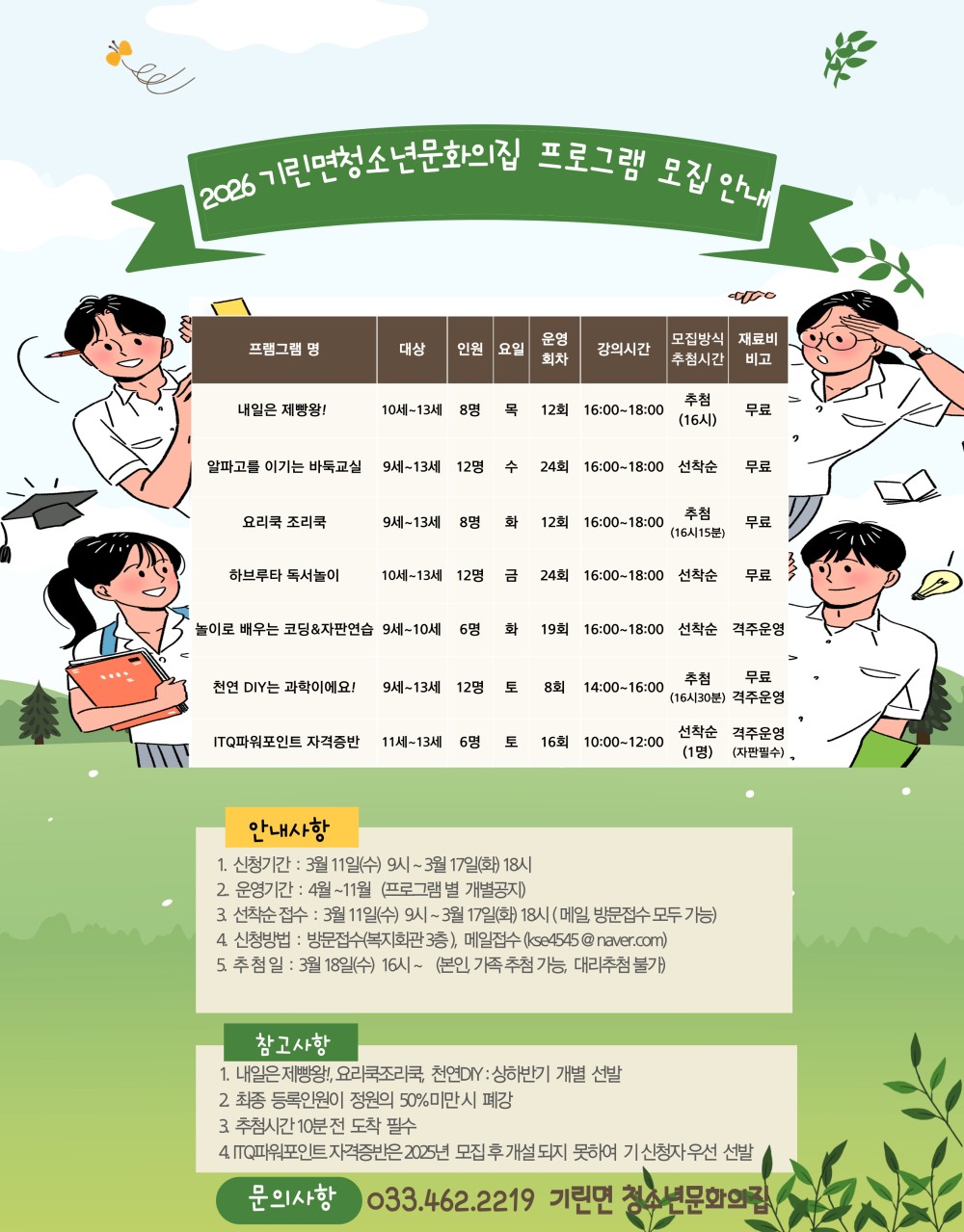 5. 접수문의 : 033) xxx-xxxx 기린면 청소년문화의집