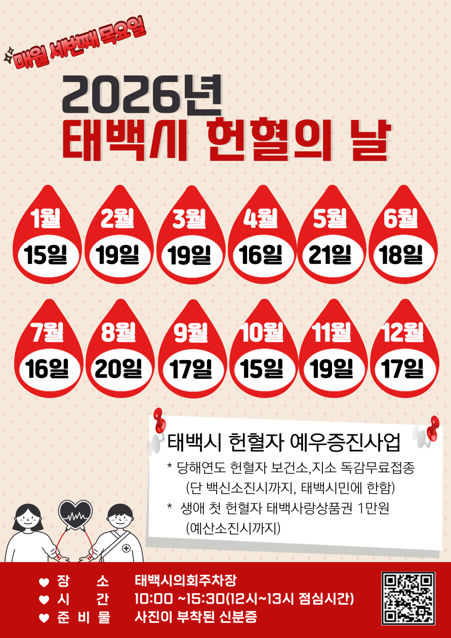 [태백시] 2026년 3월 '헌혈의 날' 운영 안내