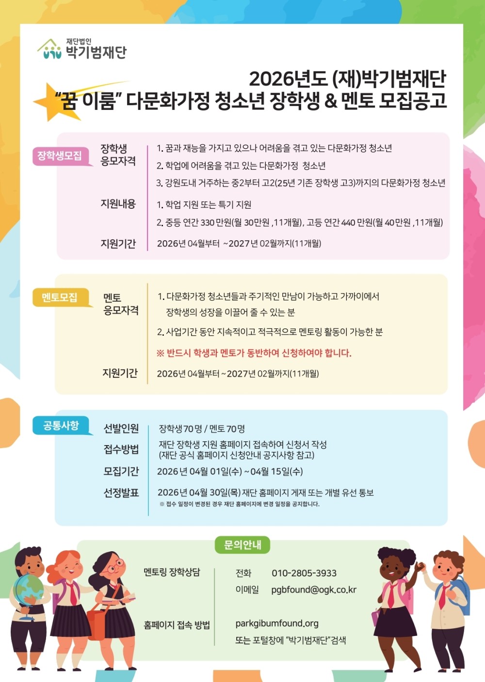 [삼척시] 2026년도 (재)박기범재단 "꿈 이룸" 다문화가정 청소년 장학생&멘토 모집 공…