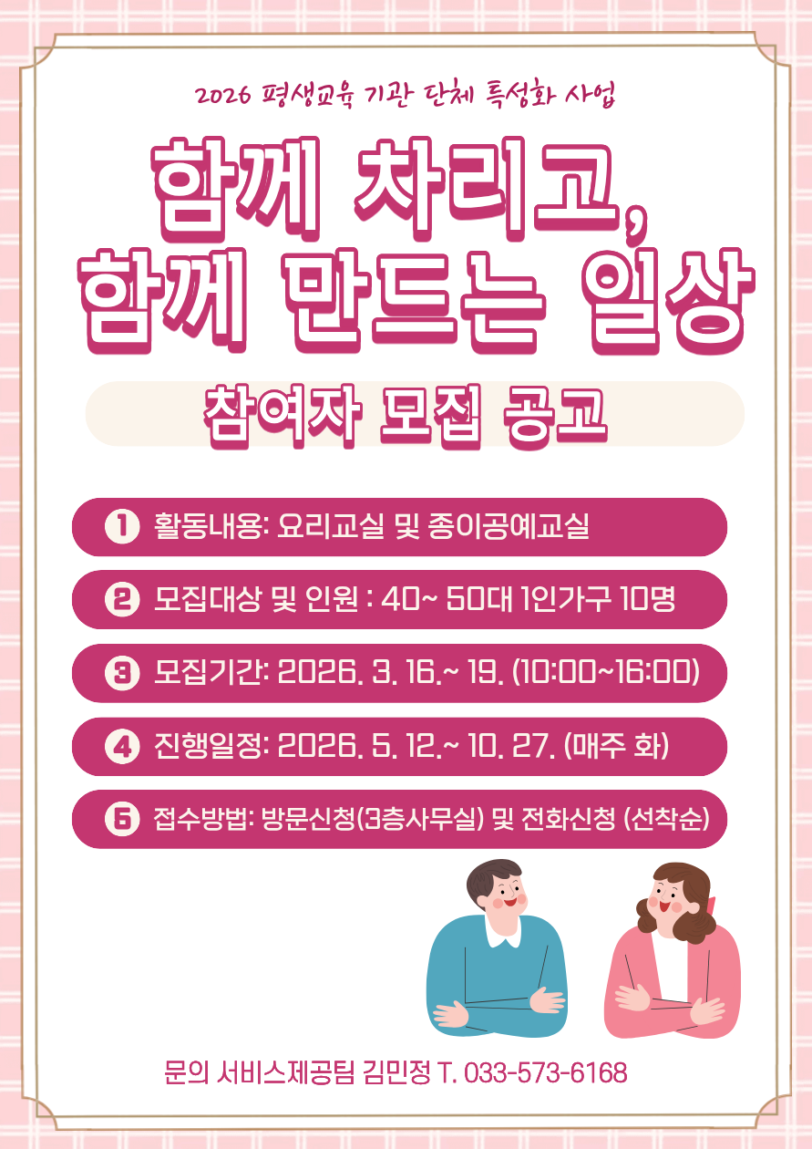 [삼척시] 삼척시종합사회복지관 "함께 차리고, 함께 만드는 일상" 프로그램 참여자 모집 안…