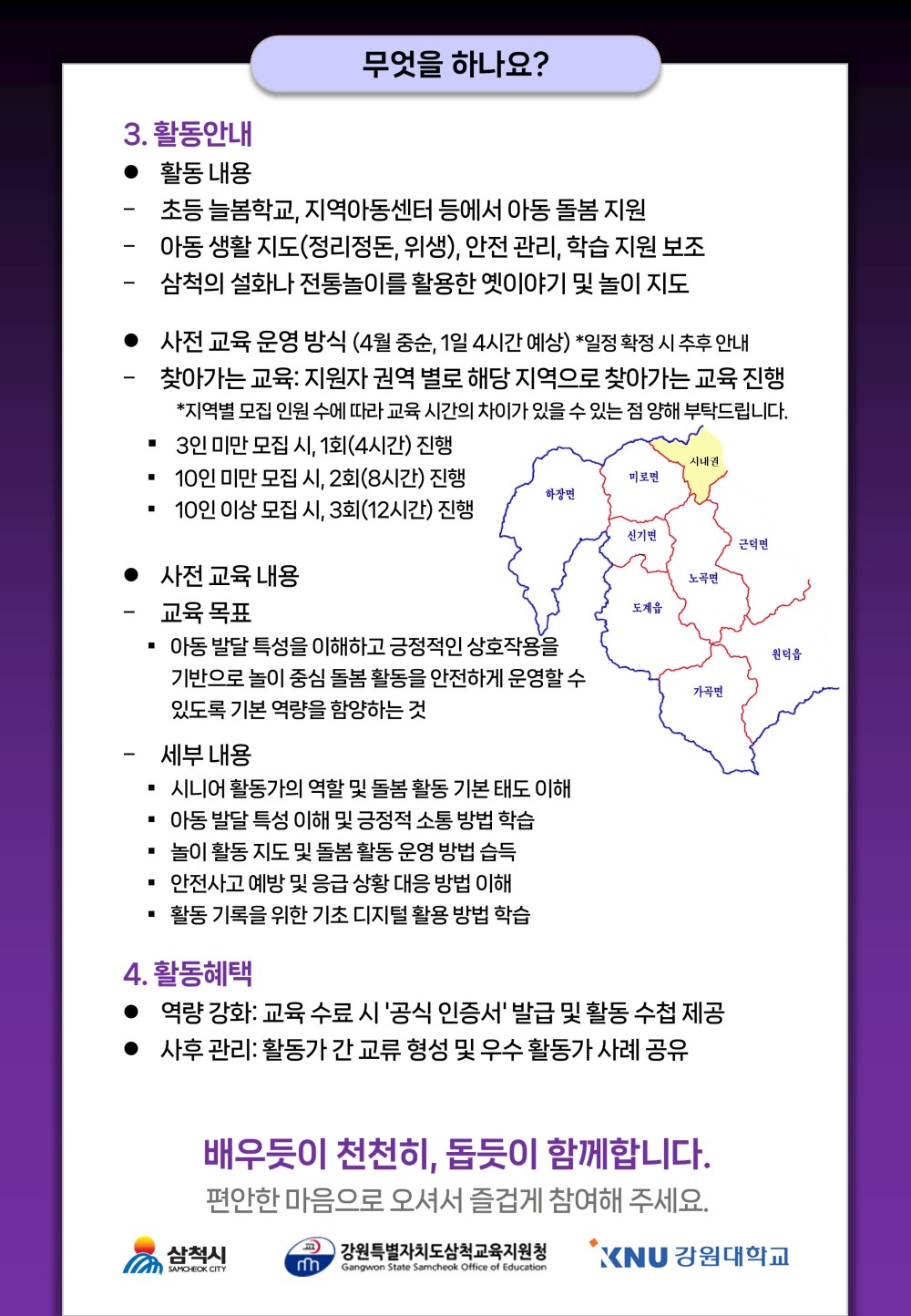 [삼척시] 『삼척시 교육발전특구 사업』아동 돌봄 지원 시니어 활동가 모집 안내