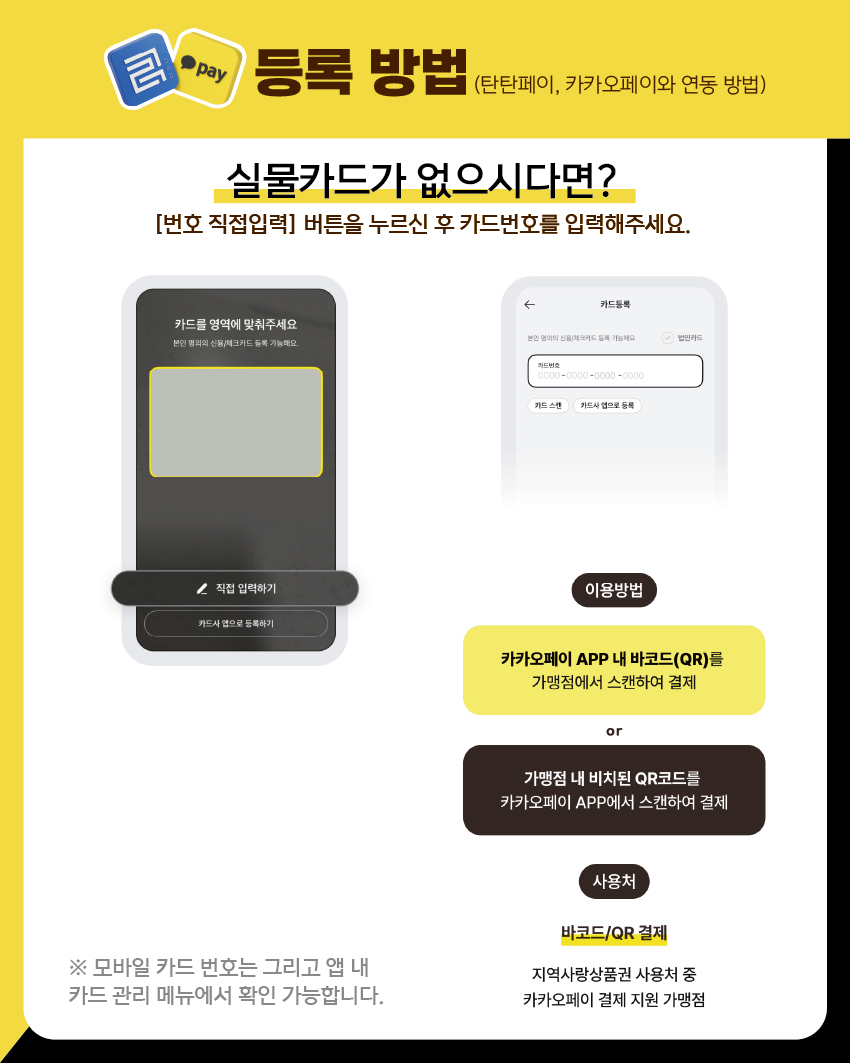 사 용 처: " 탄탄페이" 가맹점 중 카카오페이 결제지원 가맹점