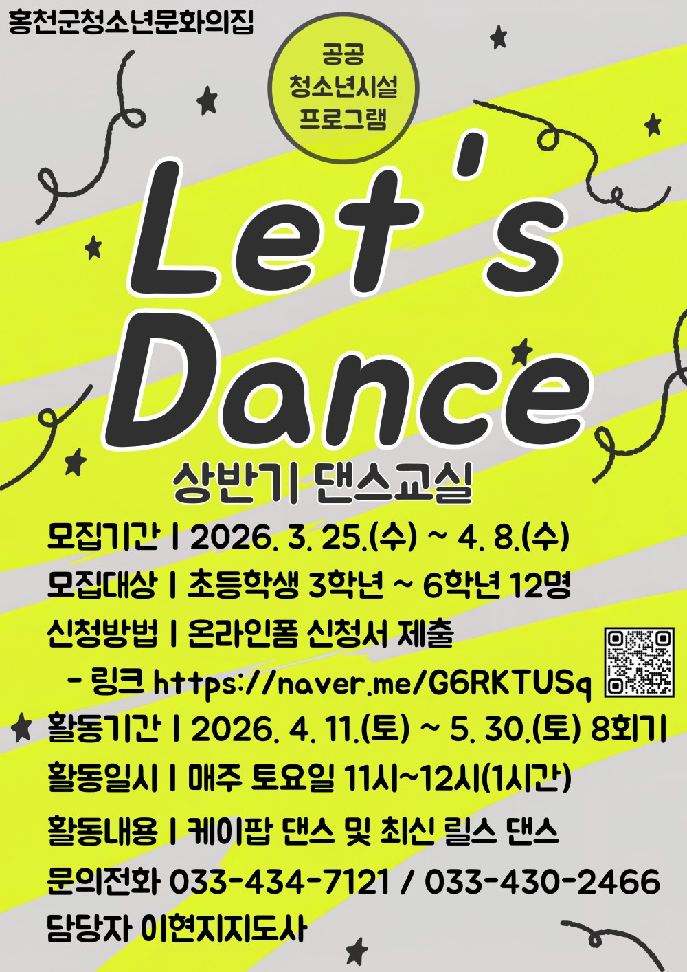 [홍천군] 2026년 홍천군청소년문화의집 공공청소년시설 프로그램 Let's Dance 참가자를 모집합니다.