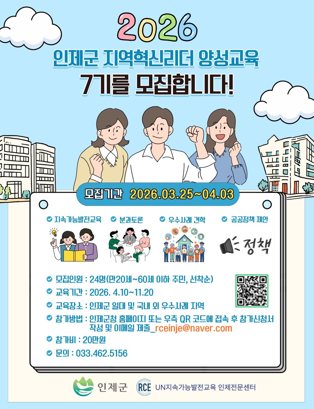 [인제군] 2026년 인제군 지역혁신리더 양성교육(7기 기본과정) 교육생 추가 모집 안내(3차)
