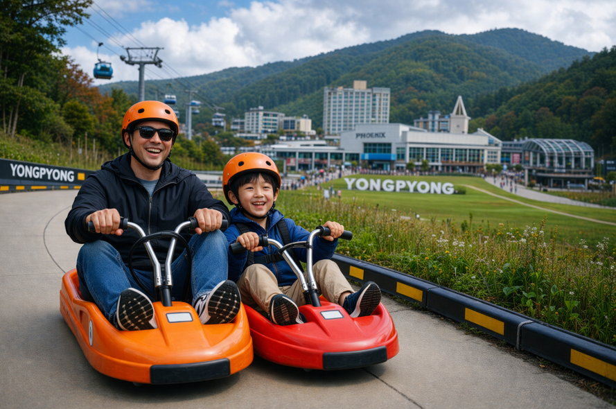 평창 여행 중 가장 인기 있는 액티비티인 용평 루지는